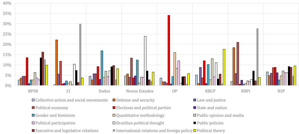 Percentage distribution of articles according to the assigned topic and journal “Elections and political parties” e “International relations and foreign policy”