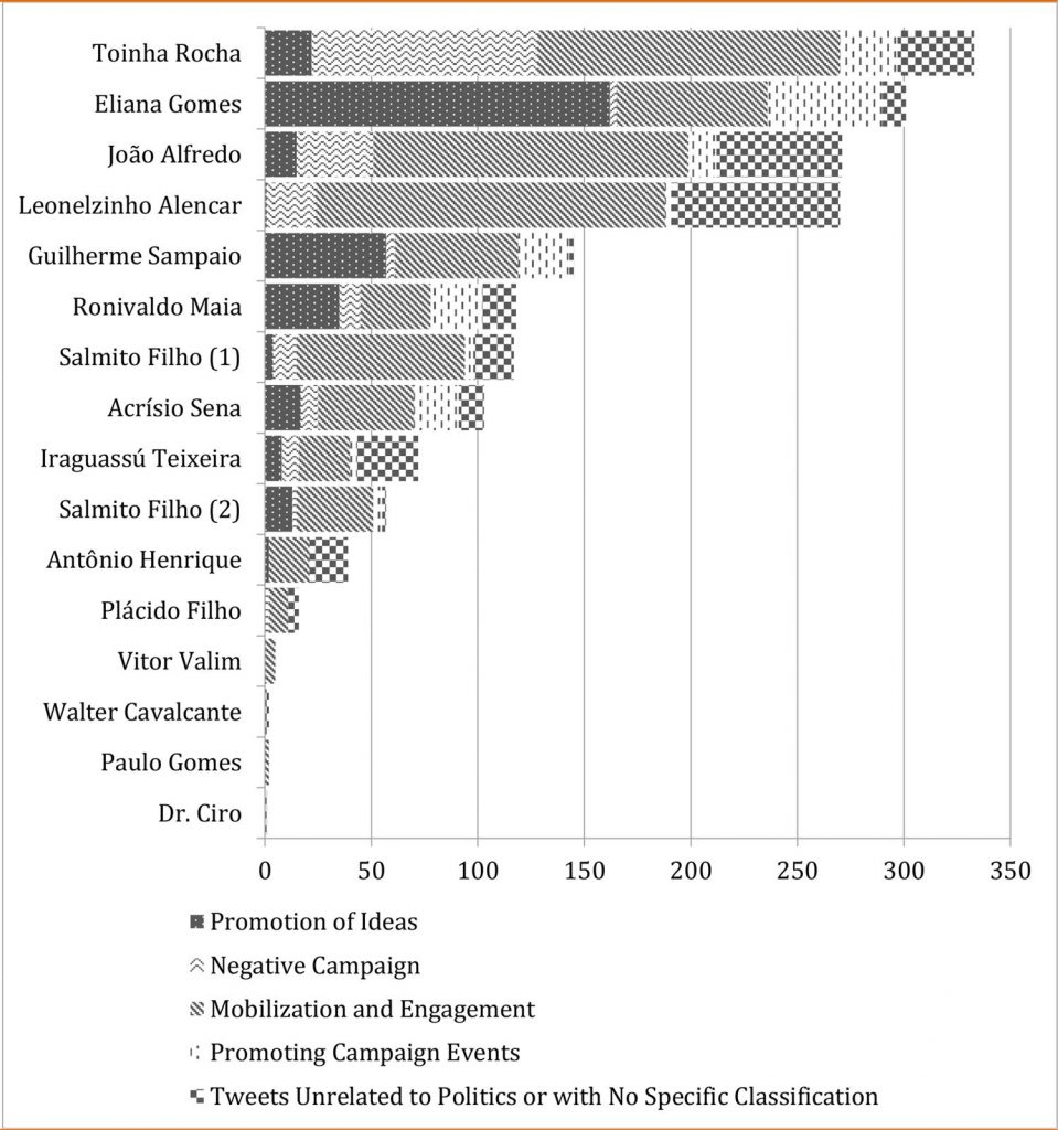 Studies on the effects of the internet on elections have revealed how Social Network Sites (SNSs) are used by citizens to learn about, choose and contact their representatives. This article analyzes 27 Twitter accounts managed by Fortaleza’s city councilors who ran for reelection in October 2012. The study aimed to discover the importance of Twitter in the councilors’ campaign strategies: what kind of messages were sent by the councilors who adopted digital communication strategies to their followers, and the relationship between party affiliation and e-campaigns. The article shows that communitarian sociability, understood as face-to-face relations or interactions among individuals, affects how the internet is used in local campaigns, since there is no direct relationship between electoral success and the heavy use of Twitter by candidates, at least in proportional local elections (which are defined as cases in which candidates do not necessarily need to reach the votes of a majority of constituents, but only a part of them). However, those who adopt a digital communication strategy use it to broadcast their political platforms and promote their campaign events. Finally, except for small left-wing parties, there appears to be no relationship between party affiliation and e-campaigns.